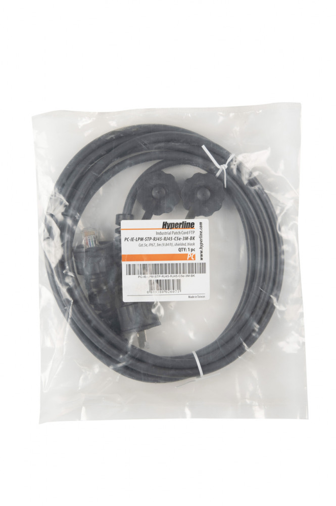 Патч-корды RJ-45 - RJ-45 промышленные, категории 5e, экранированные Hyperline PC-IE-LPM-STP-RJ45-RJ45-C5e-3M-BK
