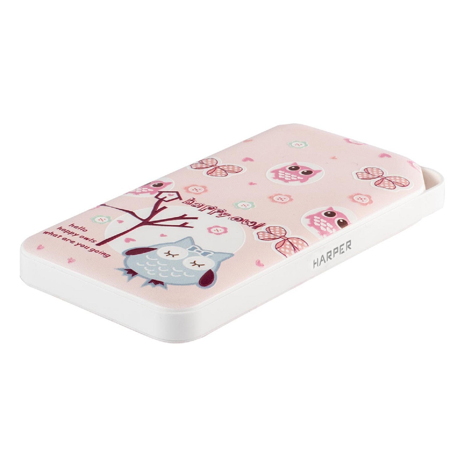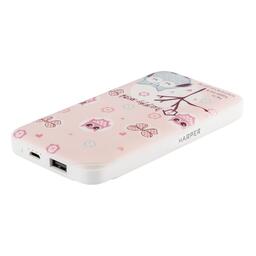 Внешний аккумулятор Harper PB-0019, 10000 мАч, USB, microUSB, 2 А, индикатор, принт "Совы"