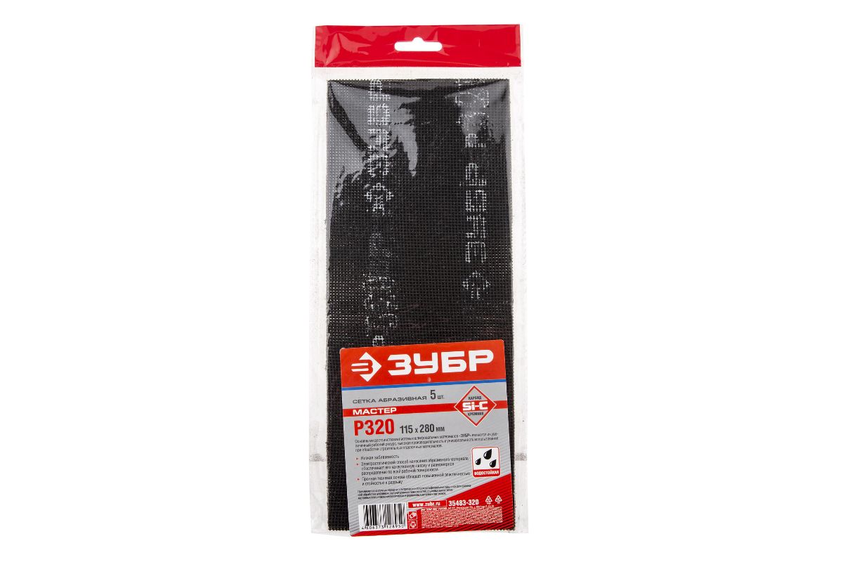 Сетка ЗУБР 35483-320 МАСТЕР абразивная водостойкая №320 115х280мм 5шт.