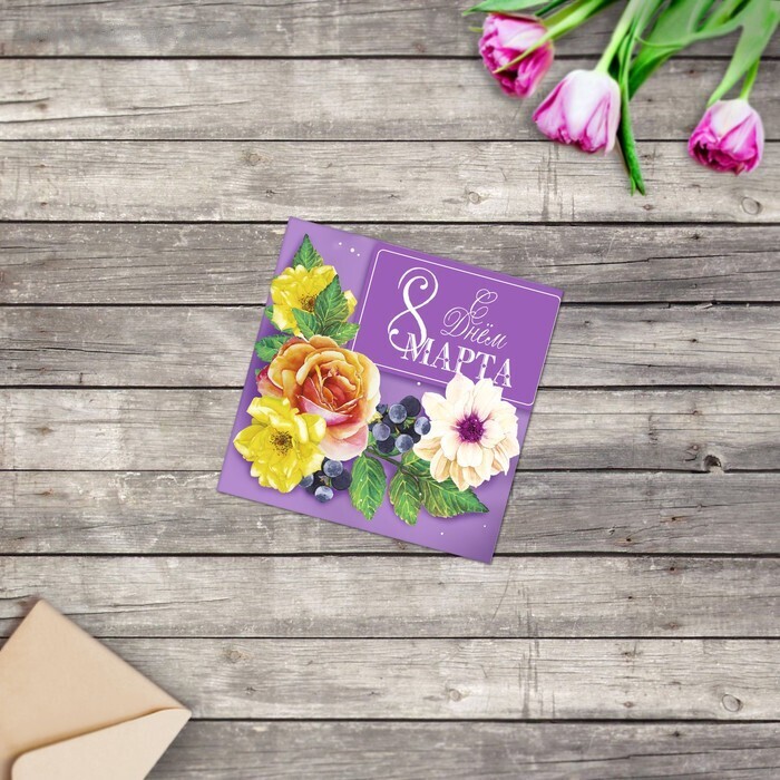 Открытка мини «С Днём 8 марта», лиловая фантазия , 7 х 7 см