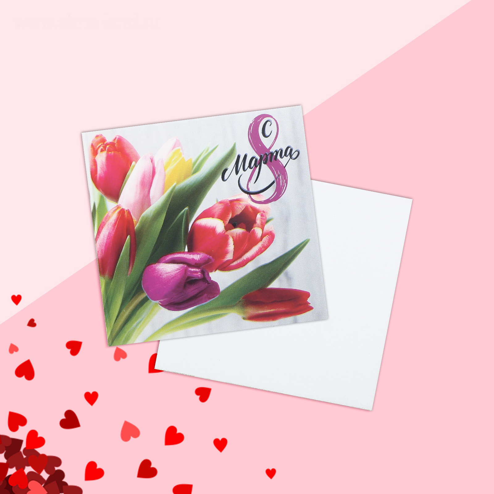 Открытка мини «8 марта», тюльпаны букет, 7 × 7 см