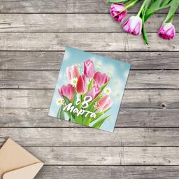 Открытка-мини "С 8 Марта!" розовые тюльпаны, 7 х 7 см