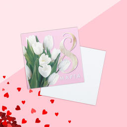 Открытка мини «8 марта», белые тюльпаны, 7 × 7 см