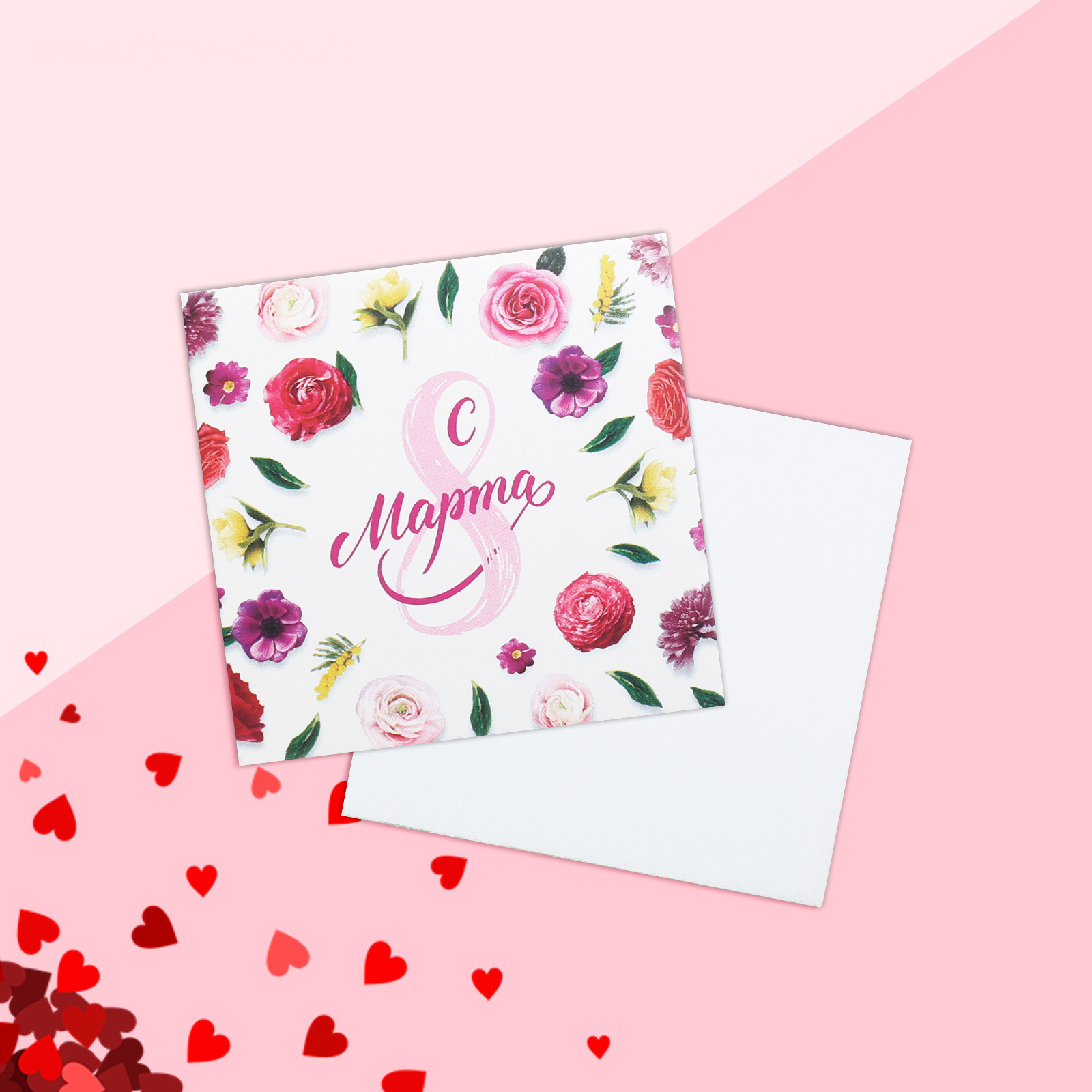 Открытка мини «8 марта», цветы, 7 × 7 см