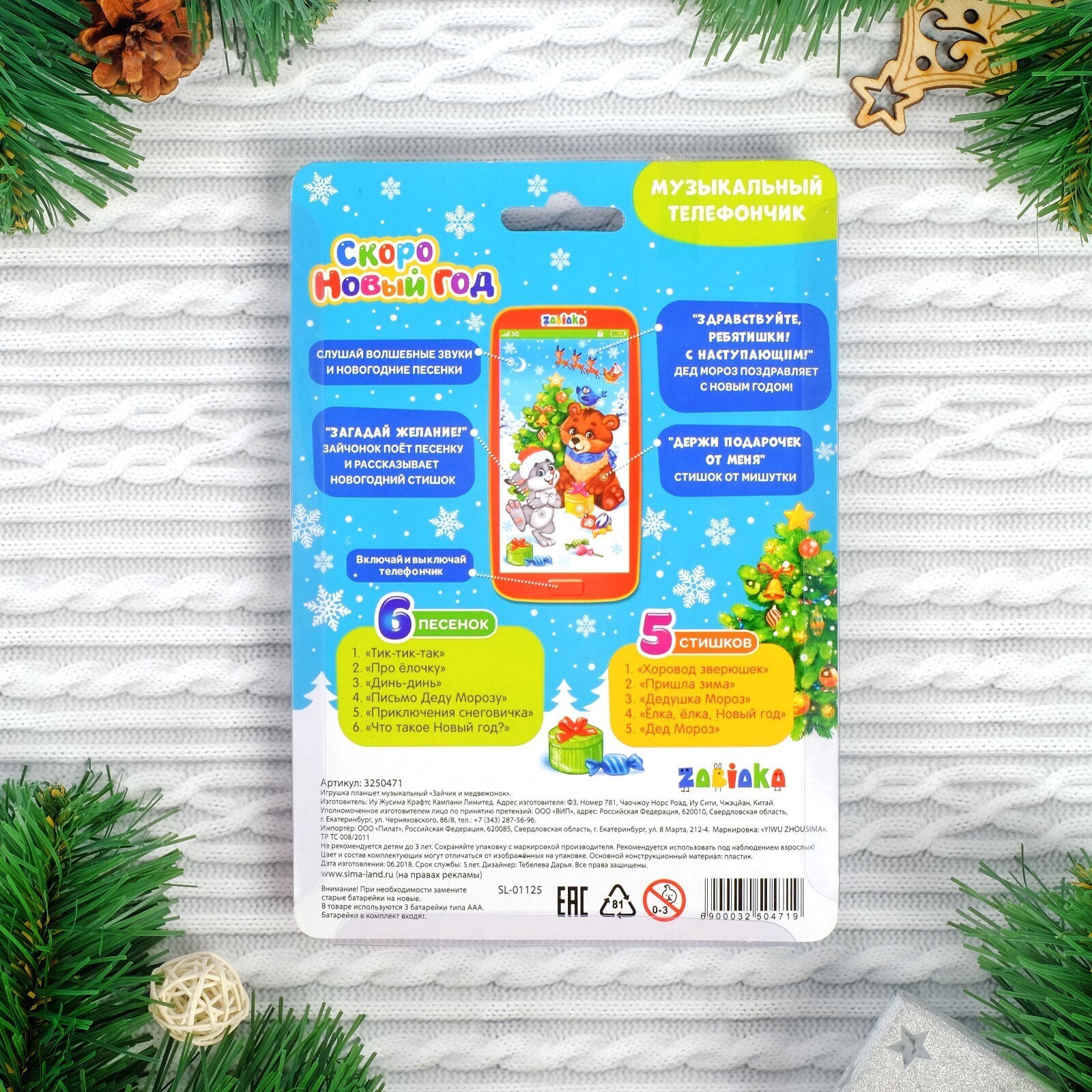 Музыкальный телефончик «Скоро Новый год», звуковые эффекты, работает от батареек