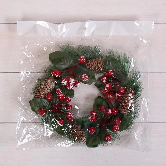 Венок новогодний d-16 см "Зимнее волшебство" ягодки и шишки