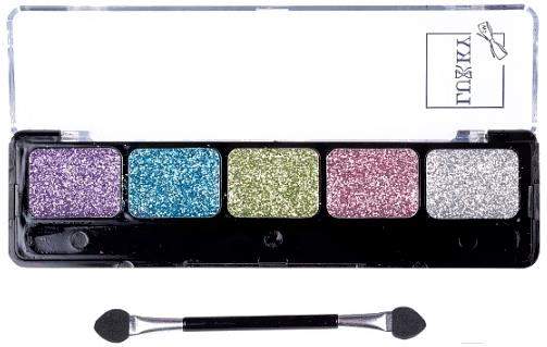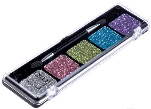 • Цвет теней розовый, голубой, с блестками, фиолетовый, серебристый, золотистый