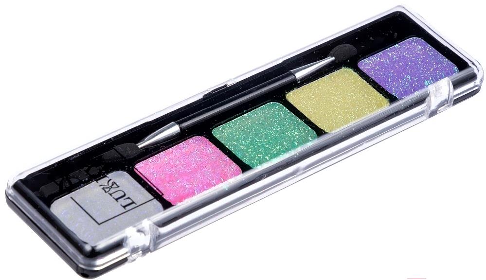 - Цвет теней розовый, зеленый, фиолетовый, серебристый, золотистый