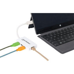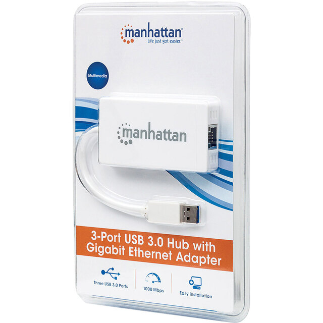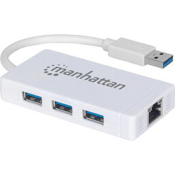 USB-хаб INTRACOM USB Hub Manhattan 3-port USB 3.0 + RJ45 White (507578)