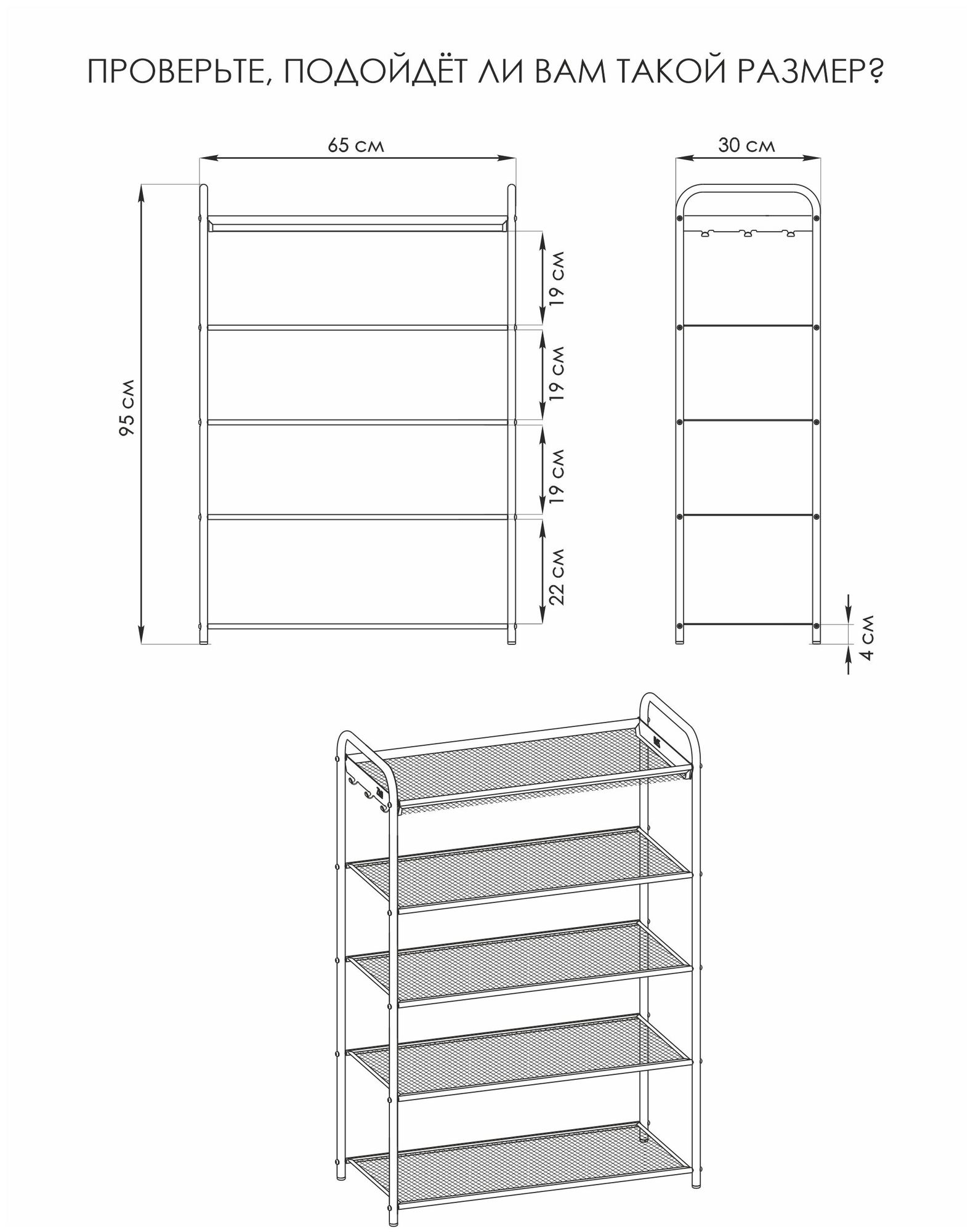 Описание товара Подставка для обуви "Верона 25" (65*30*95 см) металлик, ПДОВ25 МЕТ