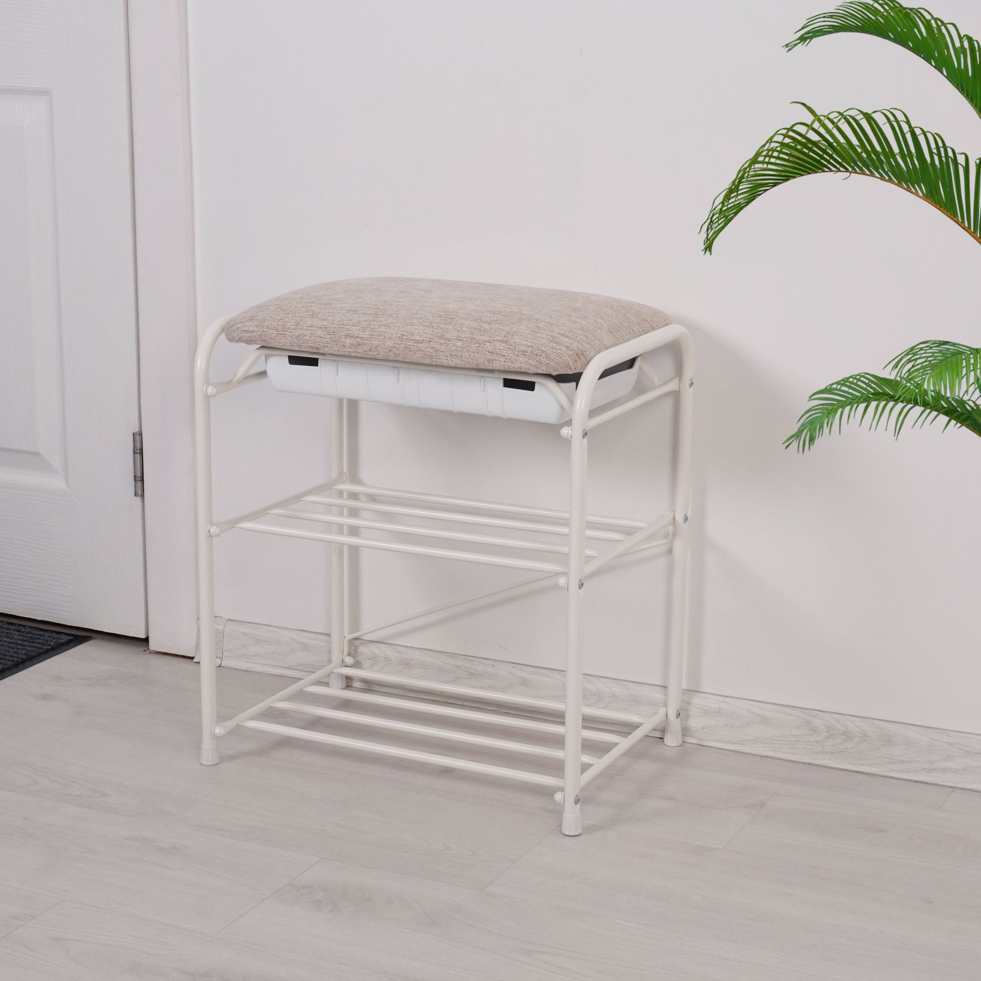 Описание товара Подставка для обуви "Уют 13", с сиденьем и ящиком, 2 полки, Д*Ш*В - 45х30х48 см, белый ПДОУ13СЯ Б
