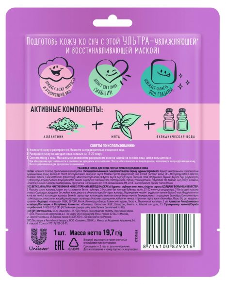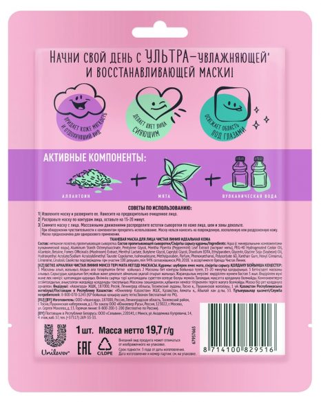 Маска для лица «Чистая линия» ультра-увлажнение, 1 шт.