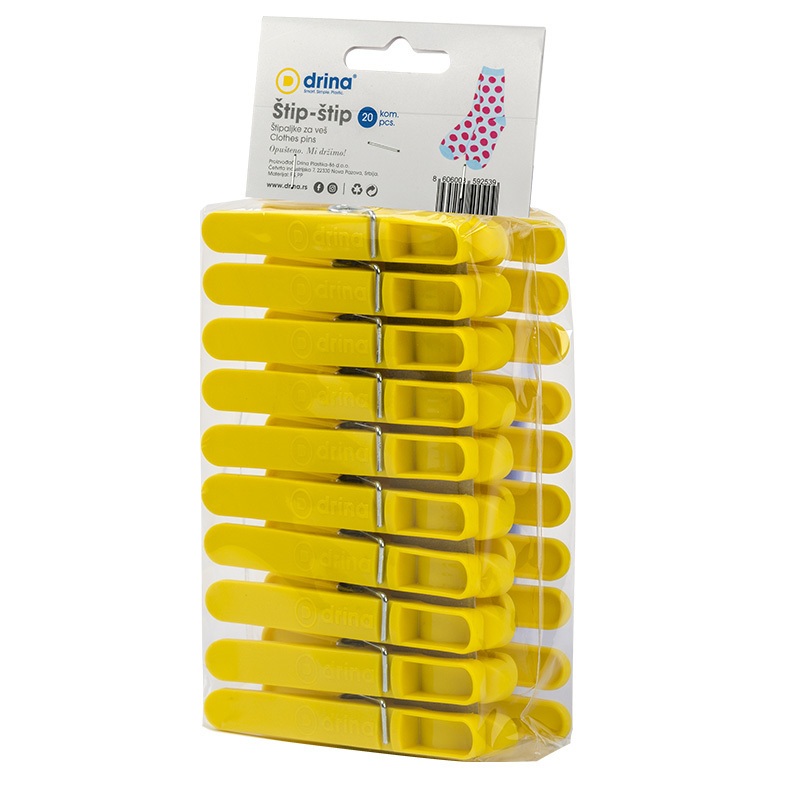 Прищепки для белья 20 шт, цвет: желтый DRINA