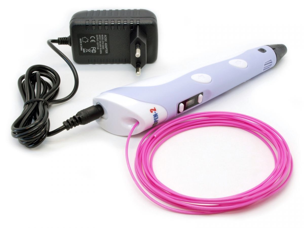 3D ручка 3DPEN-2, цвет фиолетовый, c набором разноцветного PLA-пластика 100м в комплекте