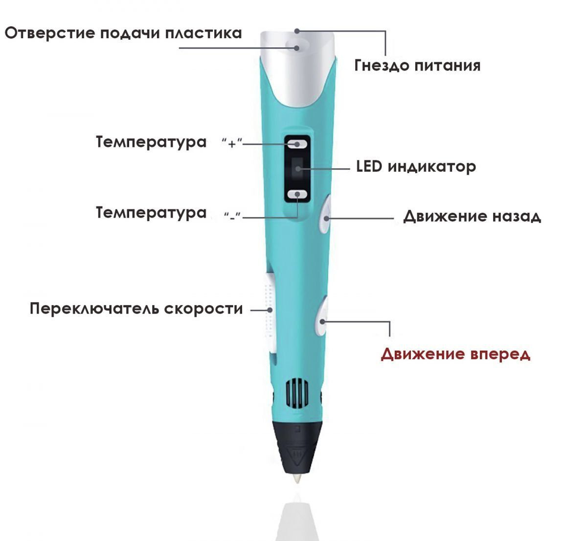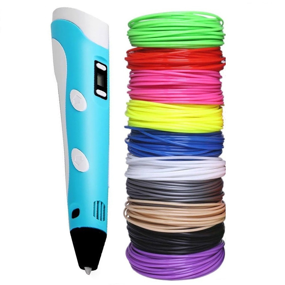 3D ручка Raduga 3DPEN-2 (цвет: голубой) с набором разноцветного пластика PLA 10 цветов по 10 метров