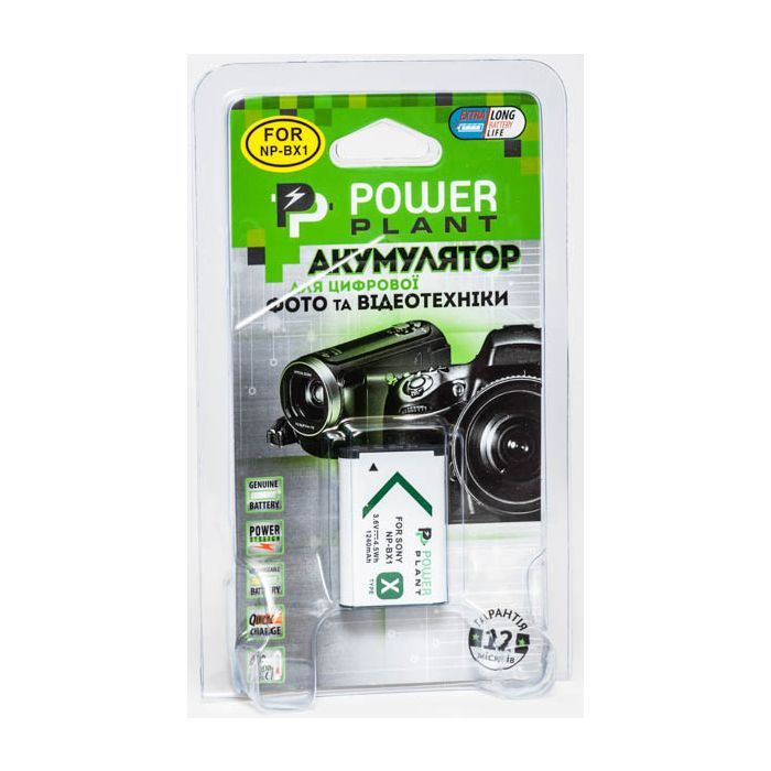 Фірма PowerPlant гарантує безпеку використання батареї PowerPlant c Вашим фотоапаратом або відеокамерою. Акумулятор PowerPlant для Sony NP-BX1 - це сучасна літієво-іонна батарея для фото і відеокамер, яка забезпечить тривалий час автономної роботи Вашого пристрою. Акумулятор PowerPlant це повноцінний аналог оригінального акумулятора. У виробництві використані тільки високоякісні елементи живлення і японські чіпи оригінальних виробників, тому акумулятор володіє високою енергетичною щільністю, низьким саморозрядом, зберігає заряд навіть при тривалому використанні, а відсутність "ефекту пам'яті" і здатність швидко перезаряджати його не досягаючи повної розрядки, можна віднести до ключових переваг.