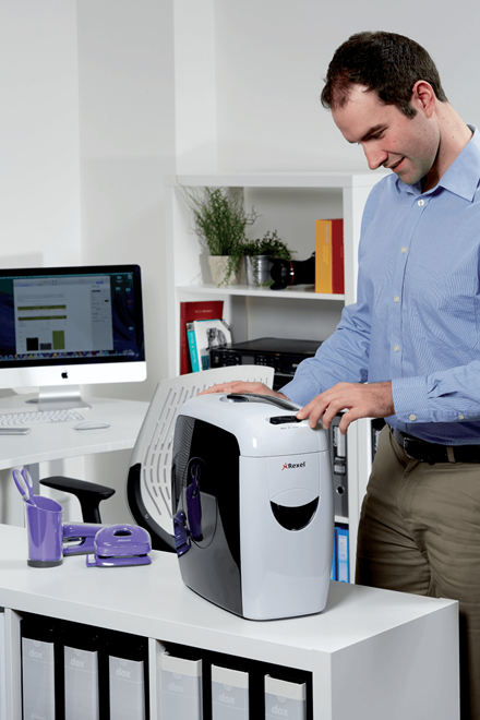 Перекрестная резка; 3 уровень секретности; уничтожение: скобы, пластиковые карты, скрепки; шум 73 дБ; реверс, авто старт/стоп, защита от перегрева; корзина 12 л.