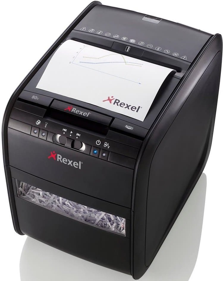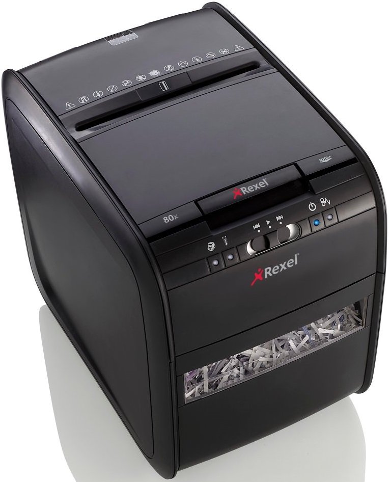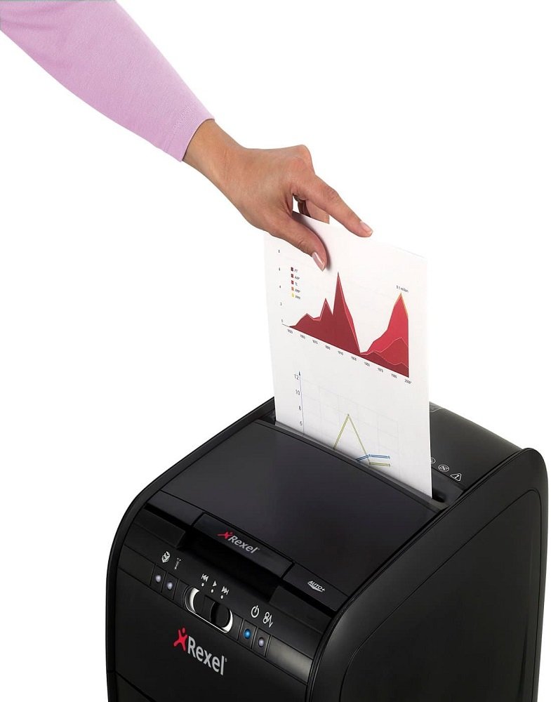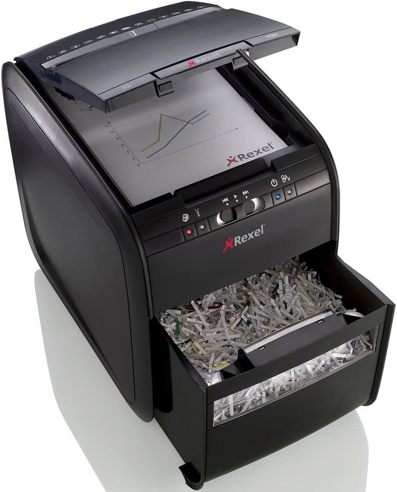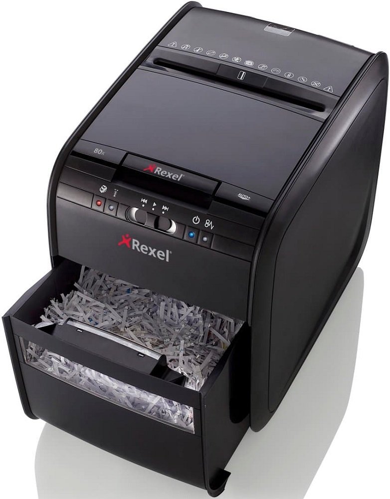 Перекрестная резка; 3 уровень секретности; уничтожение: скобы, пластиковые карты, скрепки; шум 60 дБ; авто старт/стоп, реверс; корзина 20 л.
