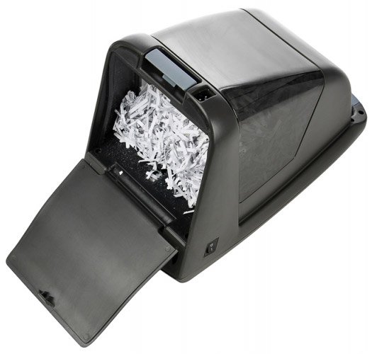 Перекрестная резка; 3 уровень секретности; уничтожение: скобы, пластиковые карты; шум 60 дБ; защита от перегрева; корзина 6.5 л.