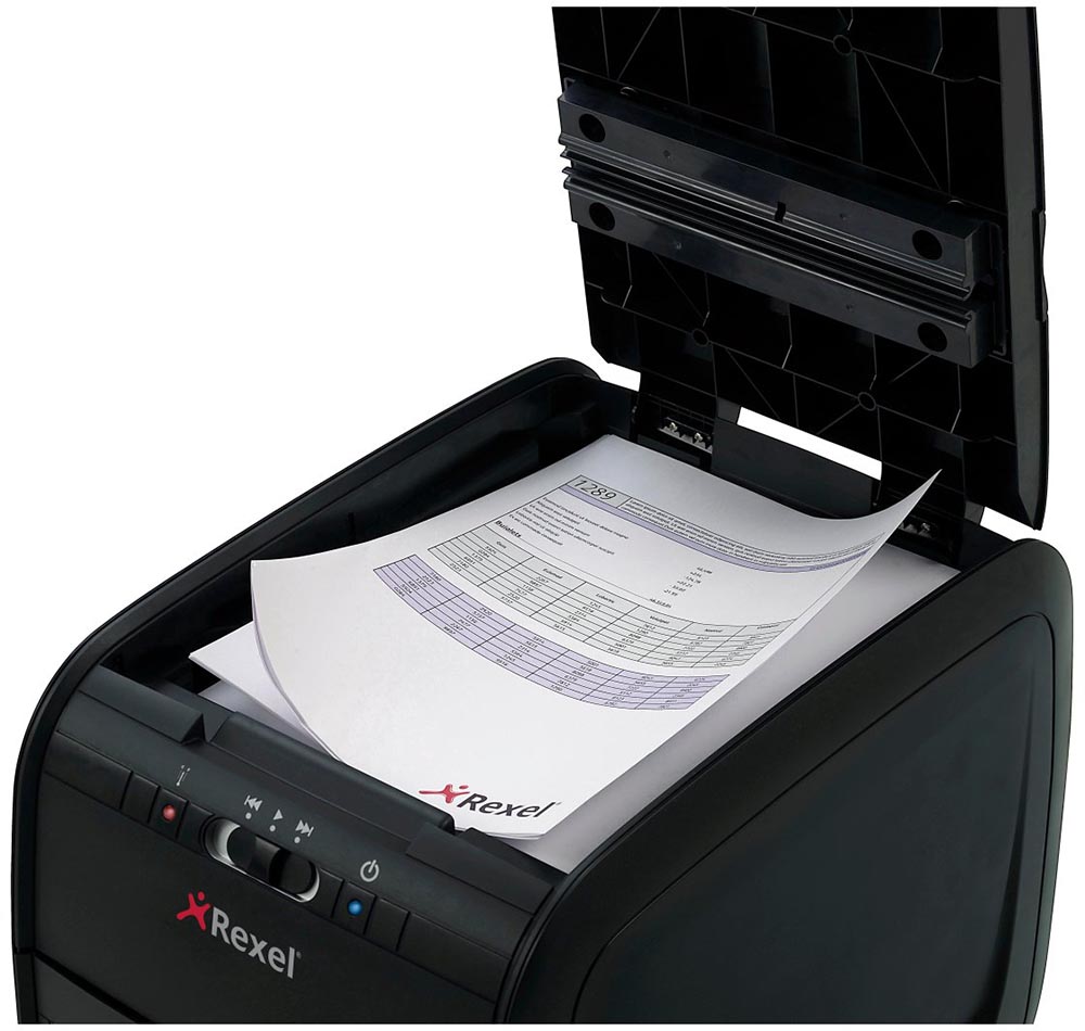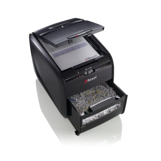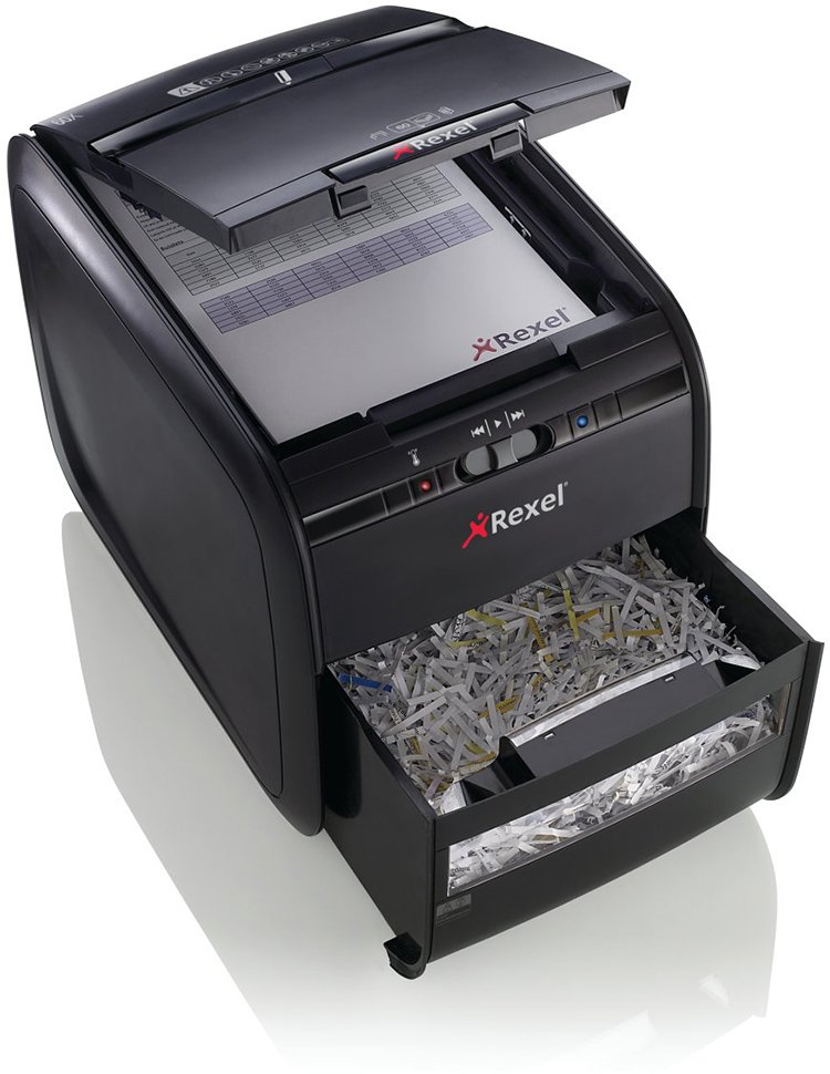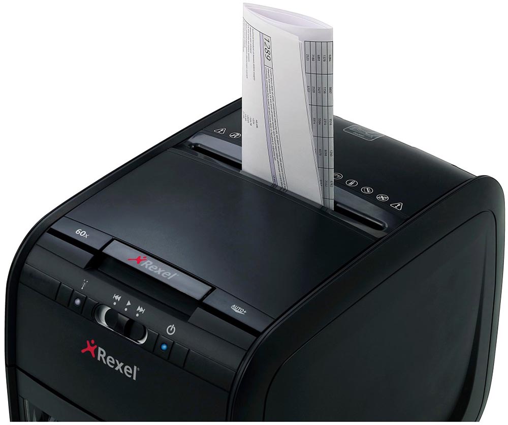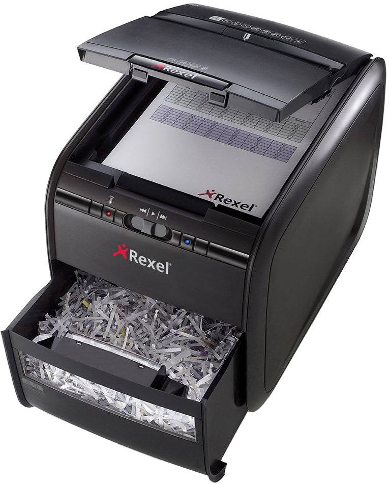 Перекрестная резка; 3 уровень секретности; уничтожение: скобы, пластиковые карты, скрепки; шум 60 дБ; реверс; корзина 15 л.