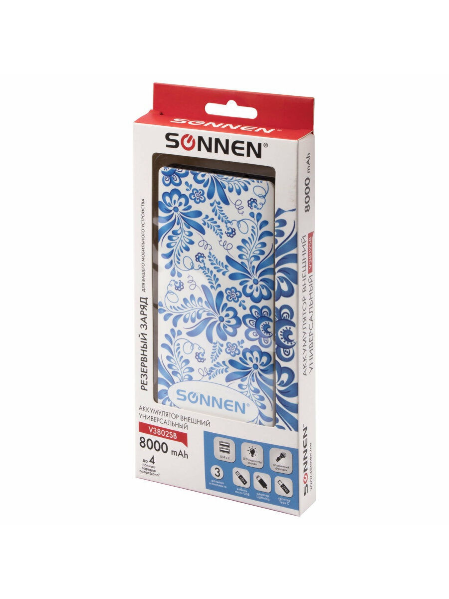 Аккумулятор внешний V3802S "Гжель", 8000 mAh, 2 USB