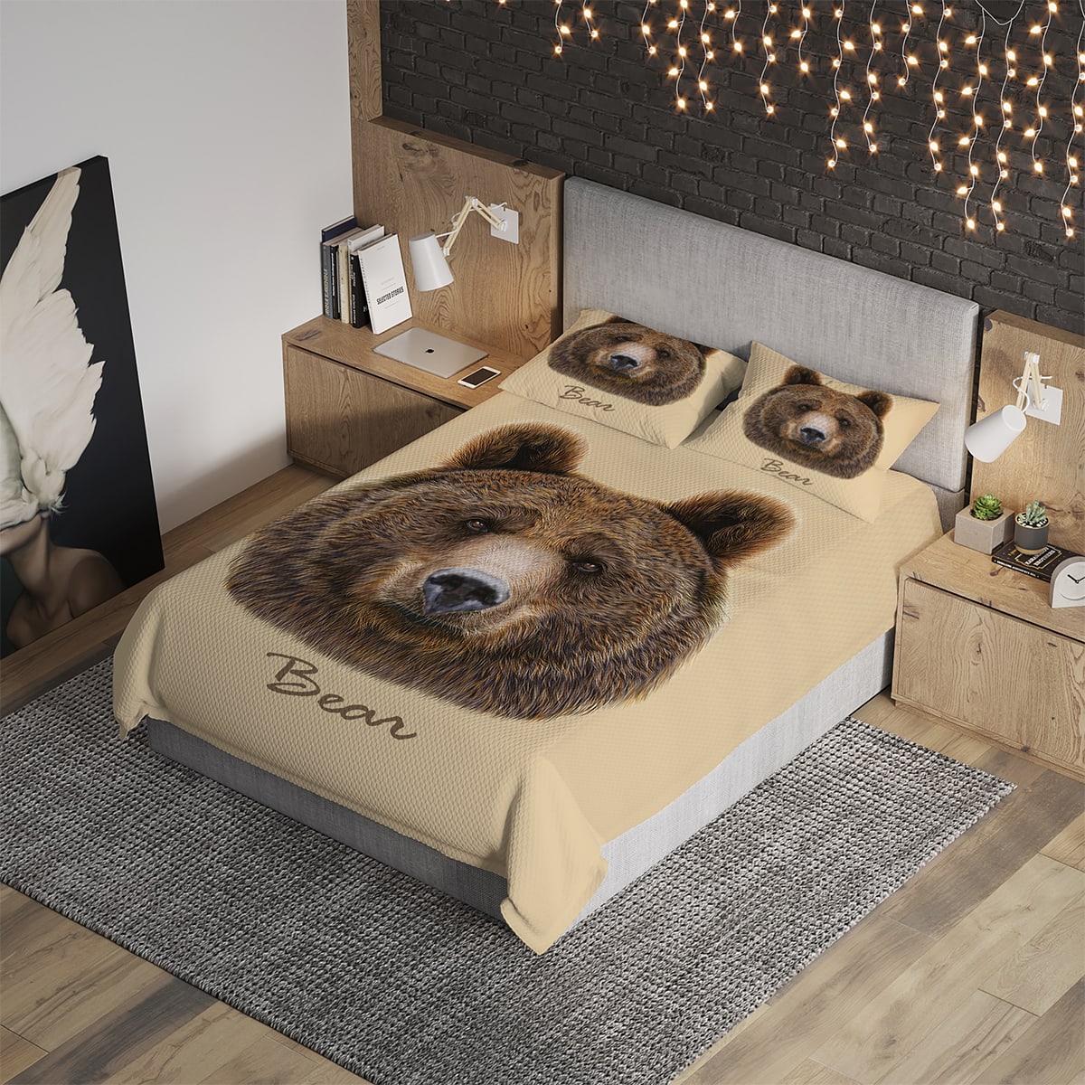 Комплект покрывала с наволочками «Бурый медведь» полутораспальный, жаккард