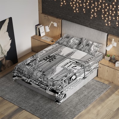 Комплект покрывала с наволочками «Город в серости» евро, жаккард