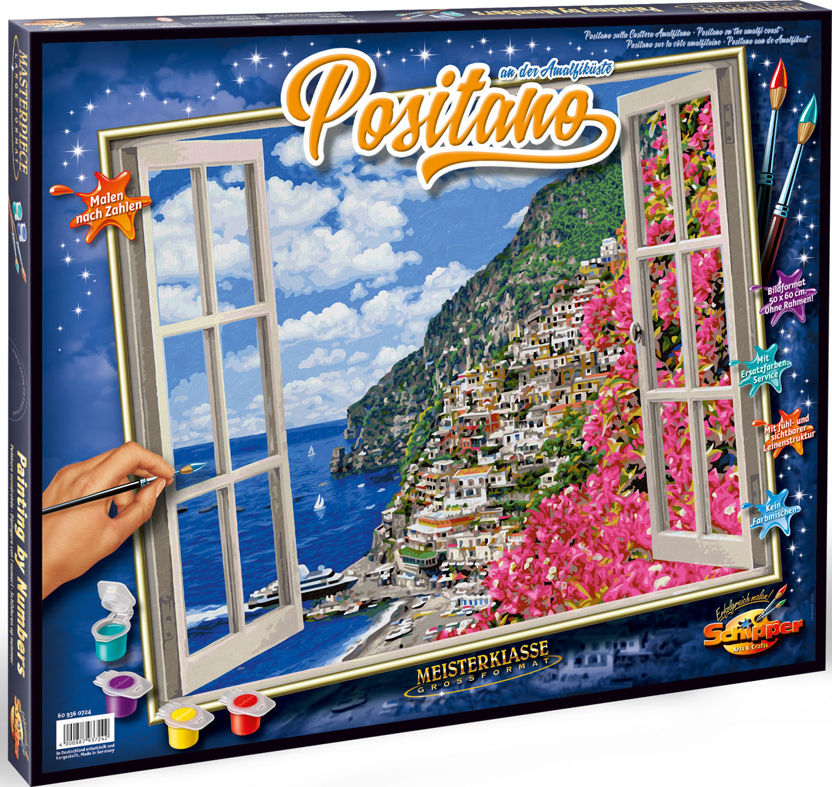 - Комплектация Фактурный картон с нанесенной схемой, акриловые краски, наклейки с номерами, кисточка, контрольный лист, инструкция