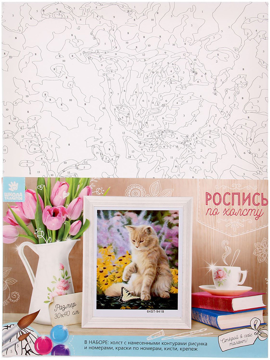 Картина по номерам Школа талантов "Кот с бабочкой", 2461715, 30 х 40 см