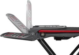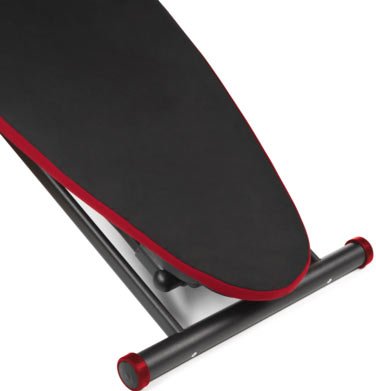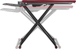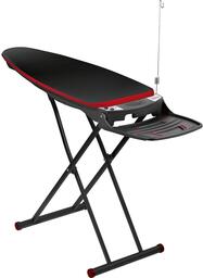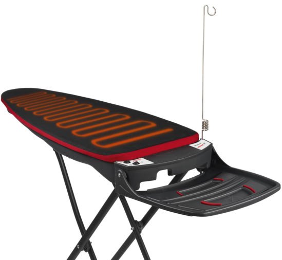 Ширина стола 45 см; длина стола 107 см; материал доски металл; механизм фиксации высоты доски ступенчатый; подставка под утюг, держатель шнура утюга, розетка.