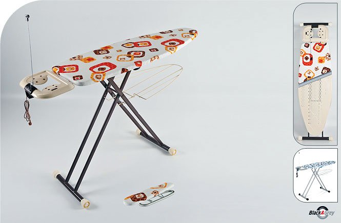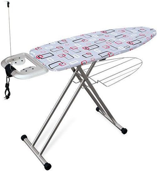 • Дополнительно Удлиннитель электросети; Подставка для утюга; Подставка для рукавов; Полка для белья; Держатель шнура утюга; Розетка с удлинителем