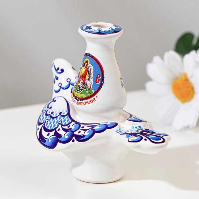 Подсвечник "Голубь. Пасха", гжель 8 см