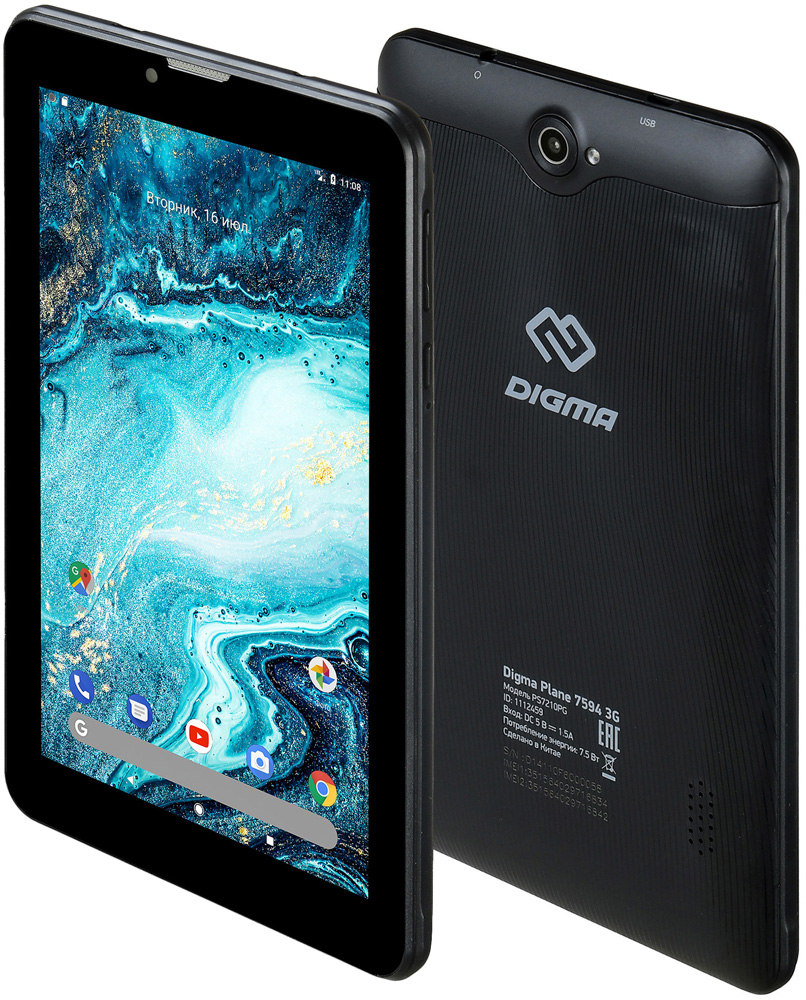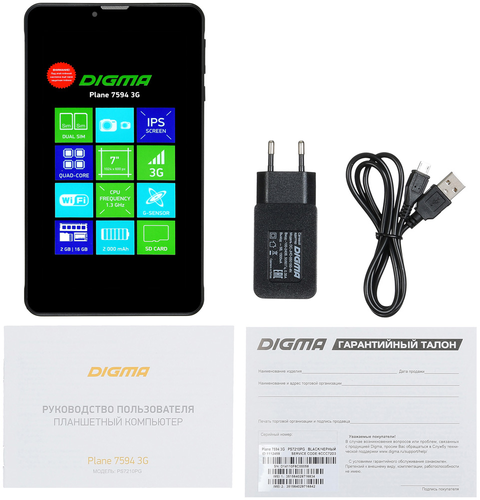 7 ; IPS; 1024х600; Android; Spreadtrum SC7731E; 4 ядерный; ОЗУ 2 Гб; встроенная память 16 Гб; тыловая камера - 2 Мп; 3G, Bluetooth, Wi-Fi; вес 260 г.
