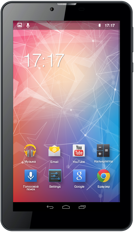 6.95 "; TN+Film; 1280x720; Android; Spreadtrum SC7731; 4 ядерный; ОЗУ 512 Мб; встроенная память 8 Гб; Bluetooth, Wi-Fi, 3G.