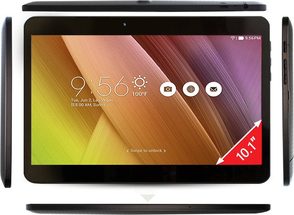 10.1 "; TN+Film; 1024х600; Android; MediaTek MT8312; 2 ядерный; ОЗУ 1 Гб; встроенная память 8 Гб; тыловая камера - 5 Мп; Bluetooth, Wi-Fi, 3G; вес 540 г.