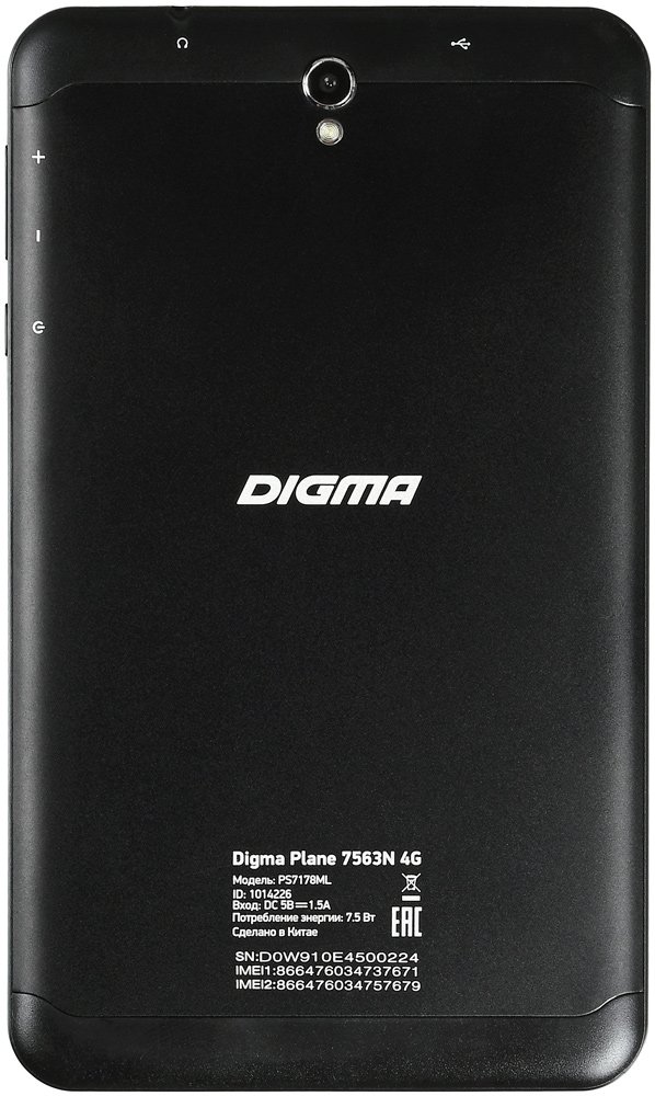 7 "; IPS; 1280x800; Android; MediaTek MT8735; 4 ядерный; ОЗУ 1 Гб; встроенная память 16 Гб; тыловая камера - 2 Мп; Bluetooth, Wi-Fi, 4G (LTE), 3G; вес 285 г.