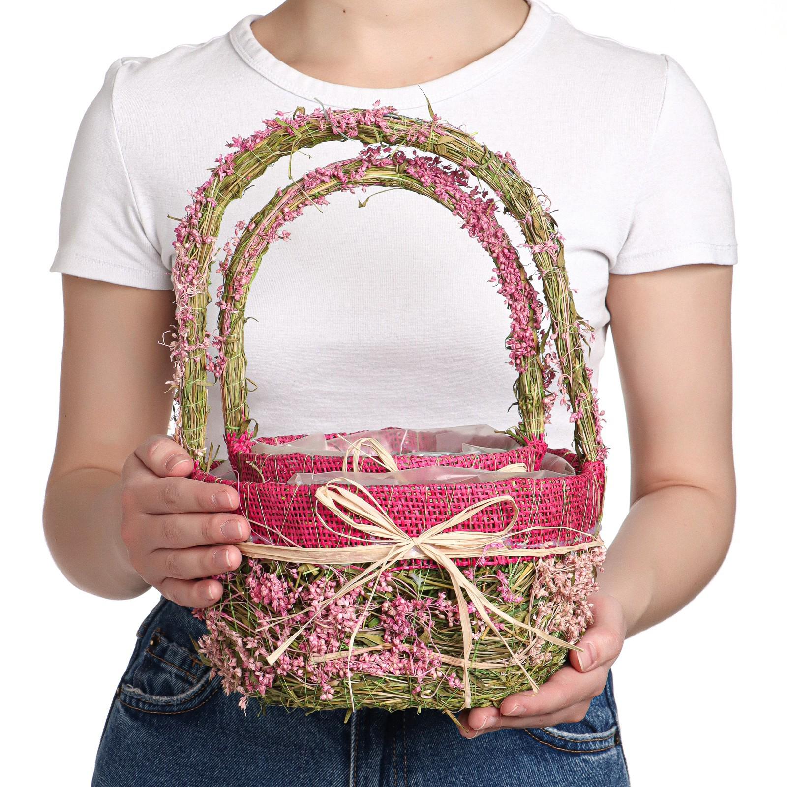 Набор корзин «Цветочный бантик», 2 шт, 22×12/32 см, 16×10/26 см, трава