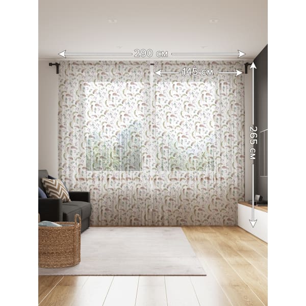 Тюль AMBESONNE Перья зеленые 265 см tul_20230_V1