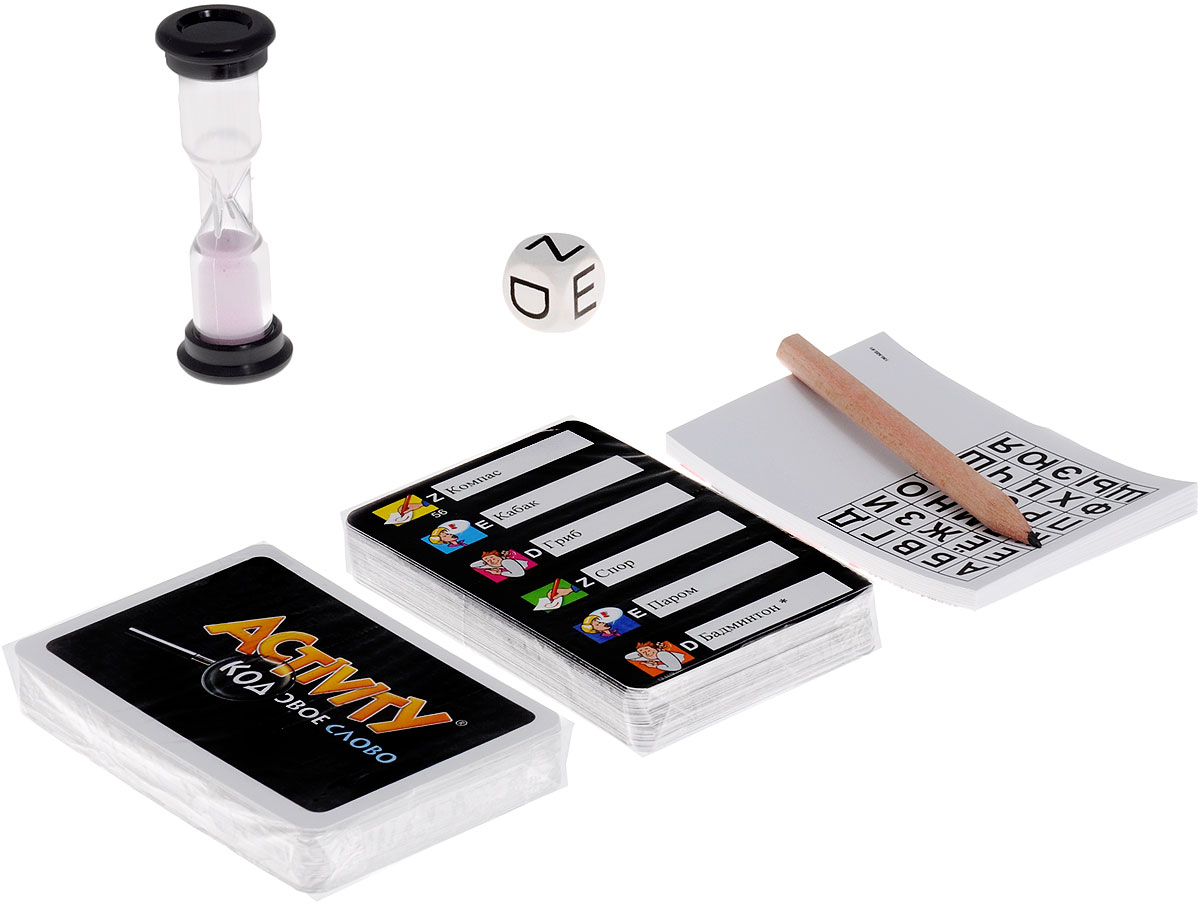 - Комплектация 110 карт, песочные часы, блок для записей, карандаш, правила игры на русском языке