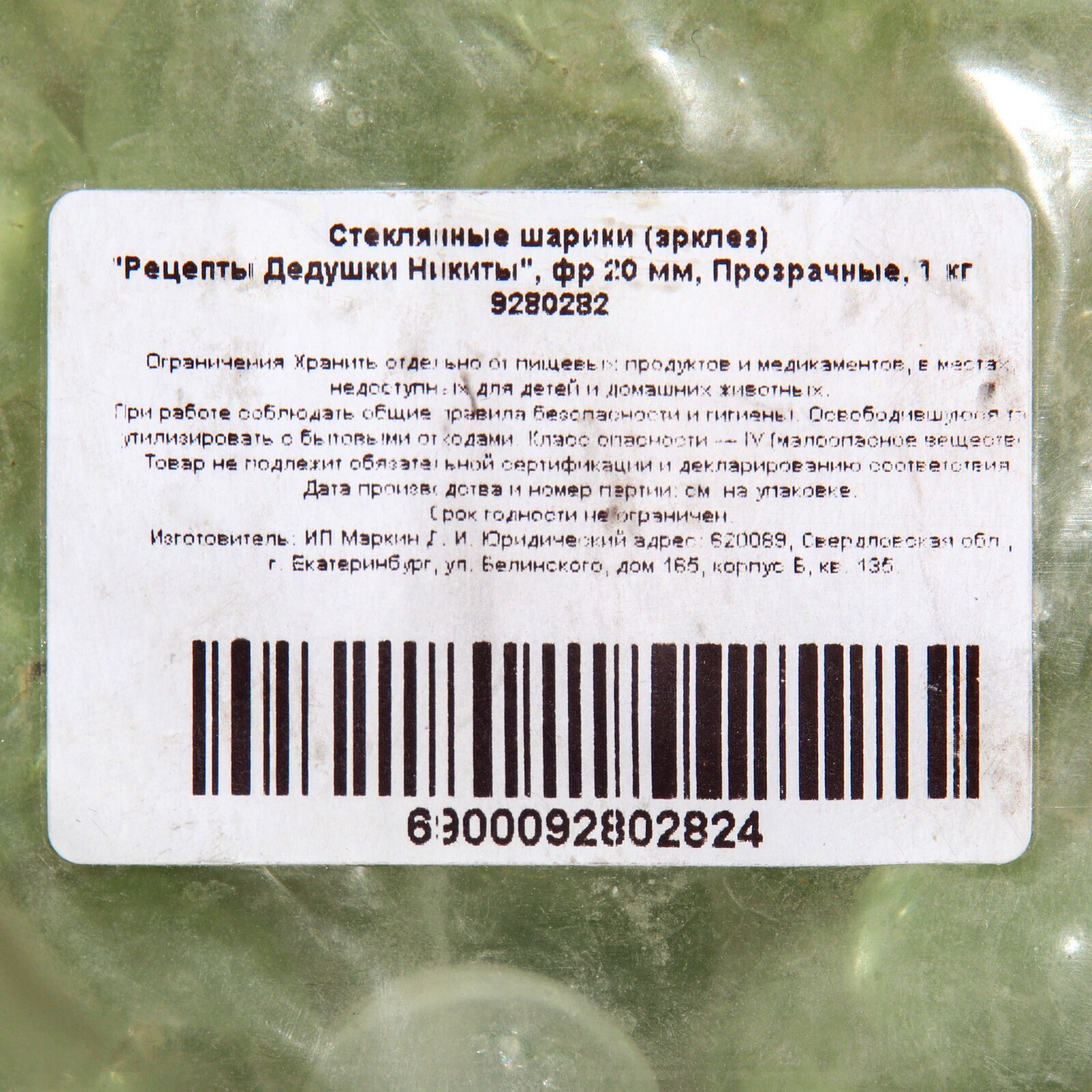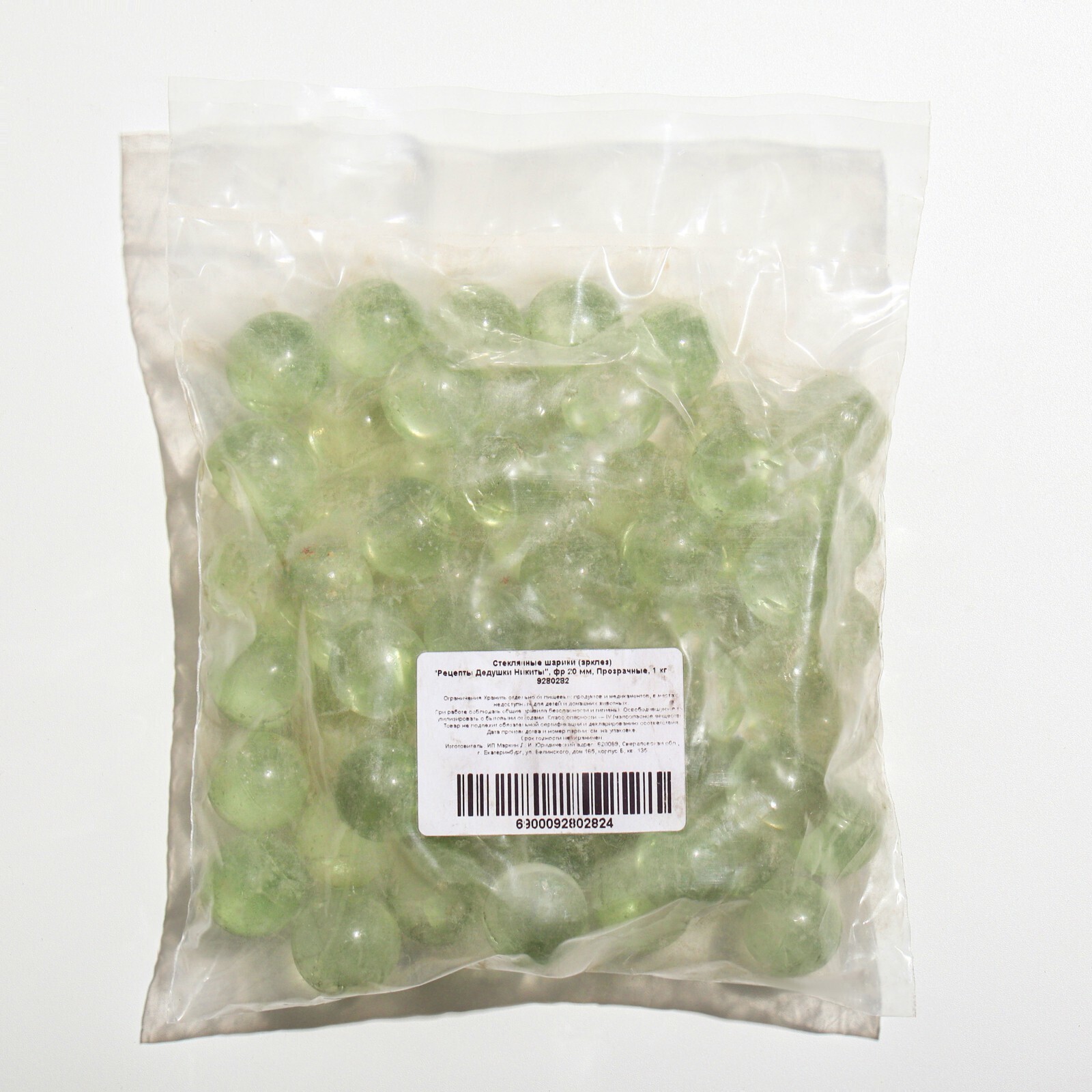 Стеклянные шарики (эрклез) "Рецепты Дедушки Никиты", фр 20 мм, Прозрачные, 1 кг