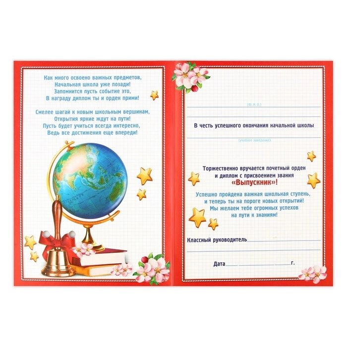 Подарочный набор: орден и диплом "Выпускнику начальной школы", 15 х 21 см