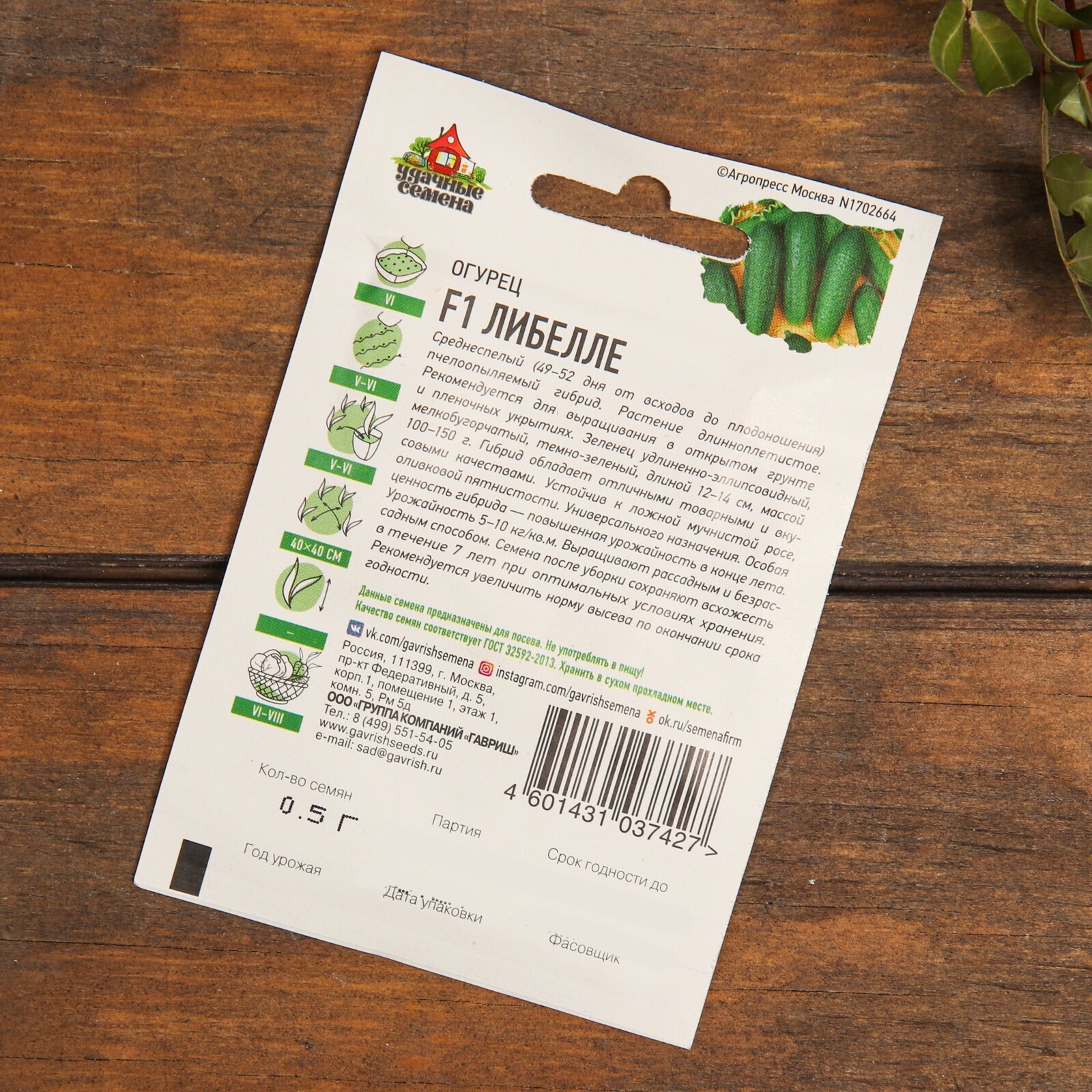 Огурец F1 Либелле – среднеранний (49-52 дня от всходов до плодоношения) пчелоопыляемый гибрид. Растение длинноплетистое. Рекомендуется для выращивания в открытом грунте и пленочных укрытиях. Зеленец удлененно-эллипсовидный, мелкобугорчатый, темно-зеленый, длиной 12-14 см, массой 100-150 г. Гибрид обладает отличными товарными и вкусовыми качествами. устойчив к ложной мучнистой росе, оливковой пятнистости. Универсального назначения. Особая ценность гибрида – повышенная урожайность в конце лета. Урожайность 5-10 кг) кв. м. Выращивают рассадным и безрассадным способом. Семена после уборки сохраняют всхожесть в течении 7 лет при оптимальных условиях хранения. Рекомендуется увеличить норму высева по окончании срока годности.