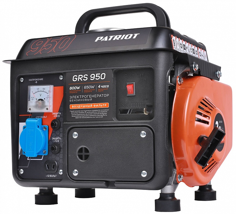 Бензиновый генератор Patriot GRS 950 - это портативный, небольшой прибор, который можно использовать в качестве надежного источника энергии в любых обстоятельствах. От этого генератора можно запитать маломощные электроприборы, такие как лампочки, телевизоры, музыкальные проигрыватели и другие электроприборы, находясь на природе, в походе или на рыбалке. Двухтактный двигатель, которым оснащен этот генератор, делает его простым и удобным для транспортировки. Синхронные генераторы переменного тока долговечны и надежны, а их выходное напряжение 12 вольт позволяет зарядить автомобильный аккумулятор в экстренной ситуации.