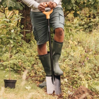 Острая кромка закругленного лезвия идеально подходит для копания, обрезки кромок и посадки в суглинке со слоем травы.
