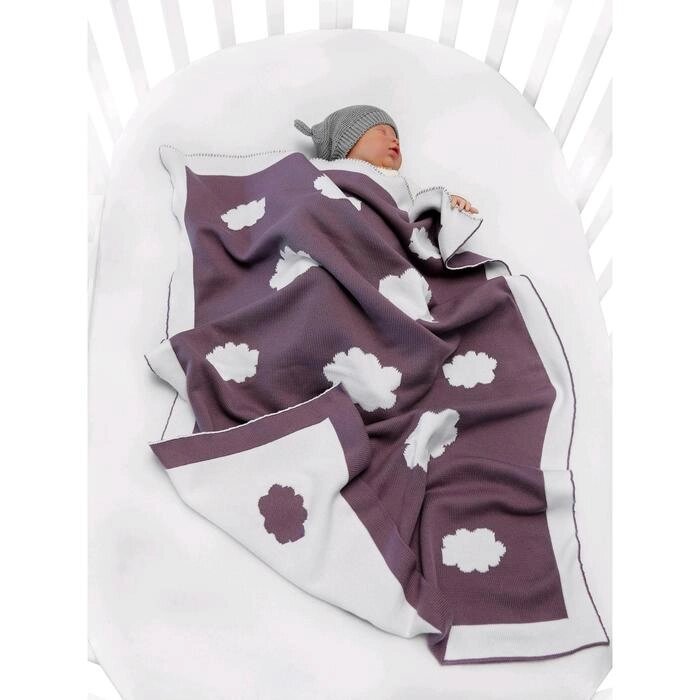 Плед двусторонний вязанный Tenny dream, размер 75 105 см, принт облака, розовый