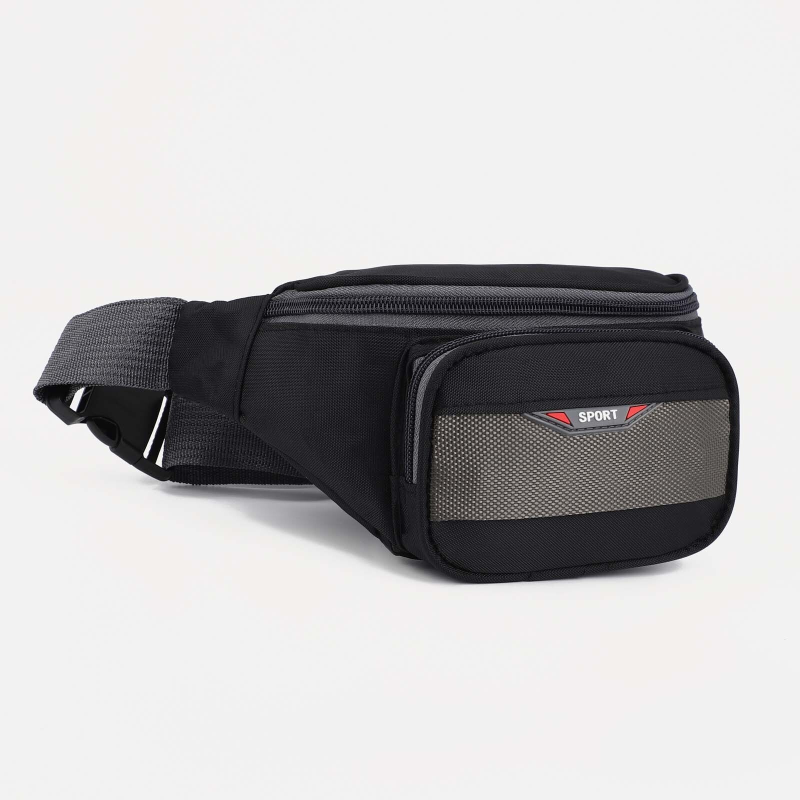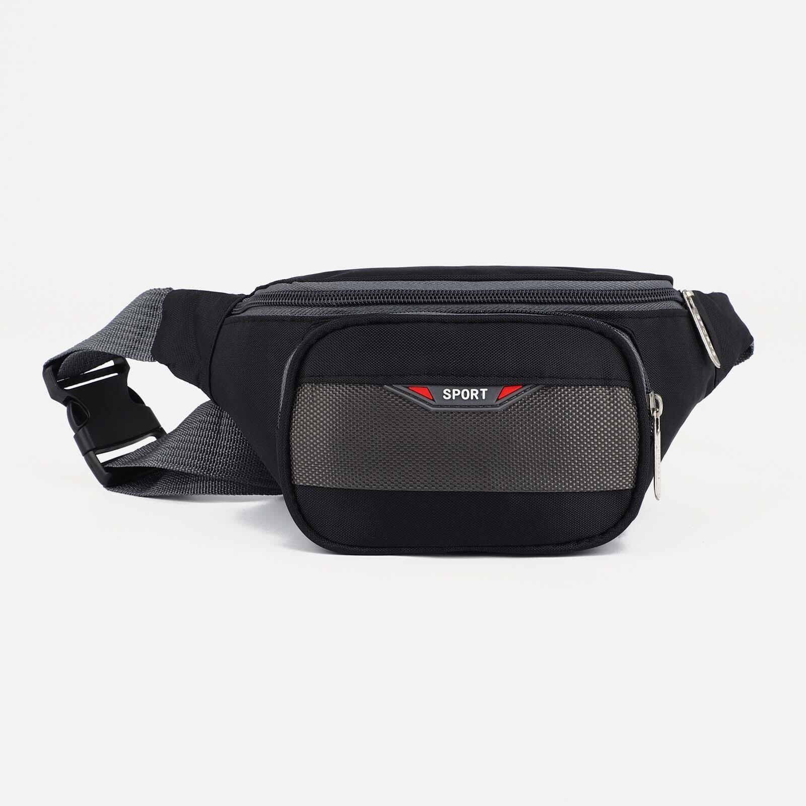 Поясная сумка на молнии, 2 наружных кармана, цвет чёрный