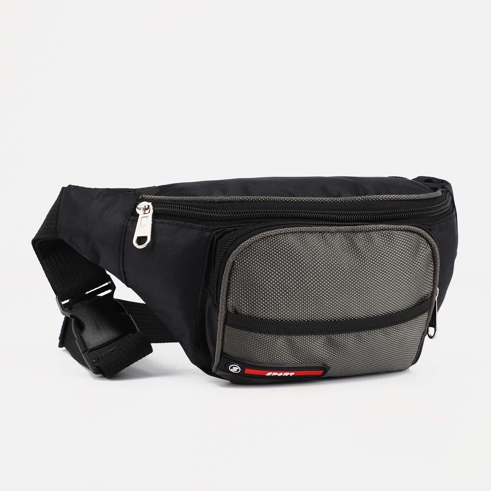 Поясная сумка на молнии, 2 наружных кармана, цвет серый