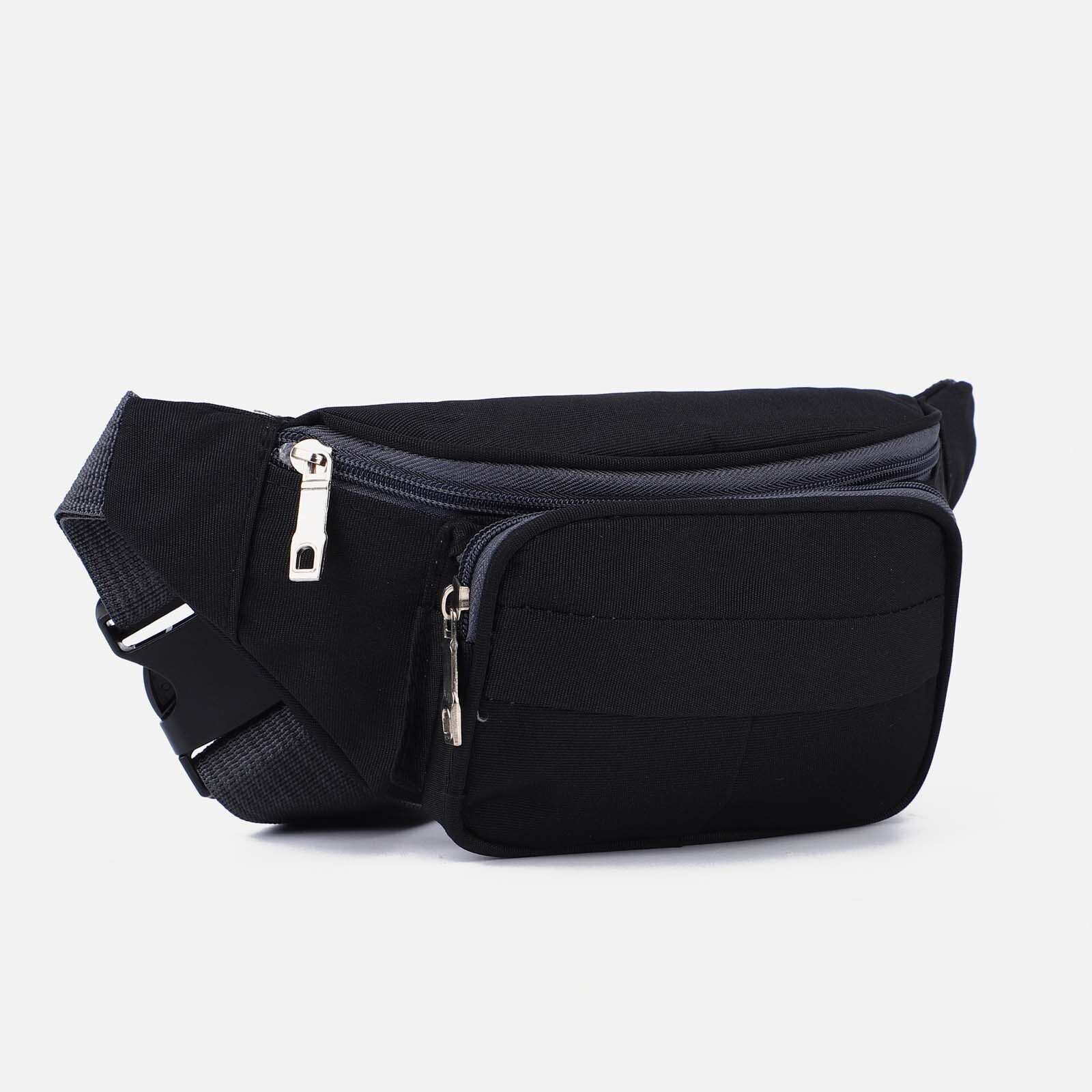 Поясная сумка на молнии, 2 наружных кармана, цвет чёрный