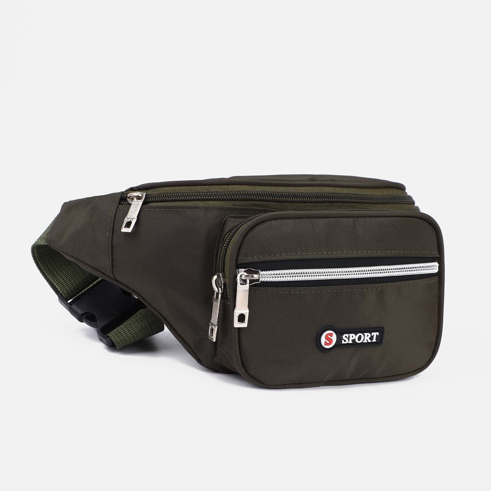 Поясная сумка на молнии, 2 наружных кармана, цвет хаки