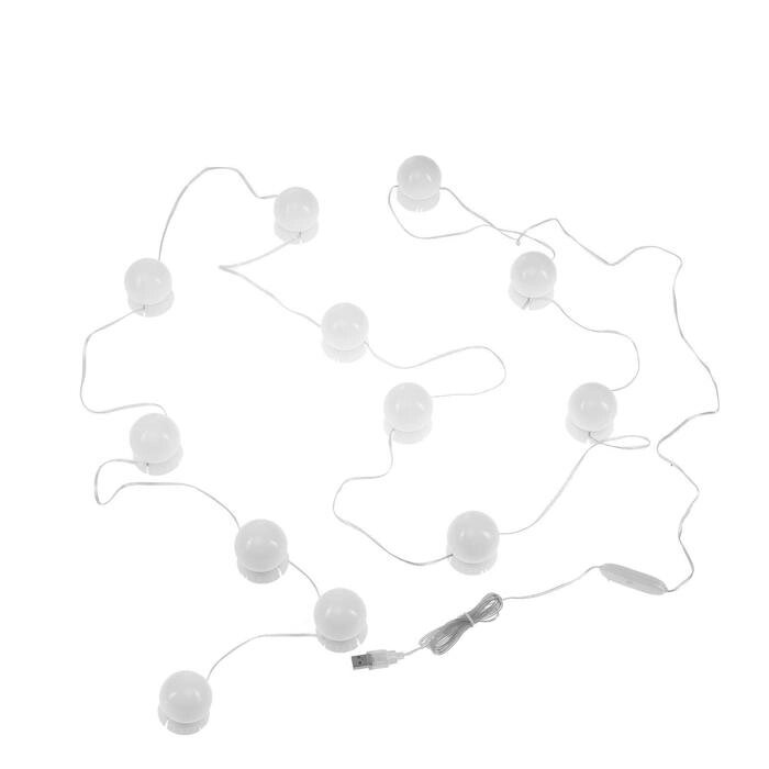Комплект светодиодных ламп для подсветки зеркала, 12шт, контроллер, от USB, 3000 - 6500К